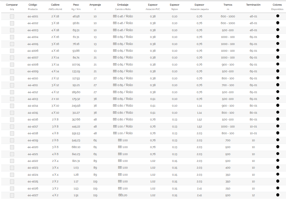 Conductor de cobre electroltico suave, venas aisladas con PVC 90°C más Nylon y chaqueta exterior de PVC 60°C. La cubierta de PVC posee retardante a la llama, libre de metales pesados. Su aislamiento de PVC/Nylon es resistente a sustancias como aceites, grasas, gasolinas, etc. o a sustancias corrosivas como pinturas y solventes, posee retardante a la llama, libre de metales pesados